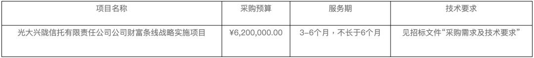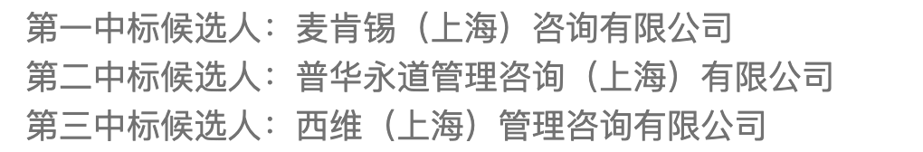 1、据中招联合招标采购网信息,麦肯锡(上海)咨询有限公司入围《光大兴陇信托有限责任公司公司财富条线战略实施项目》。